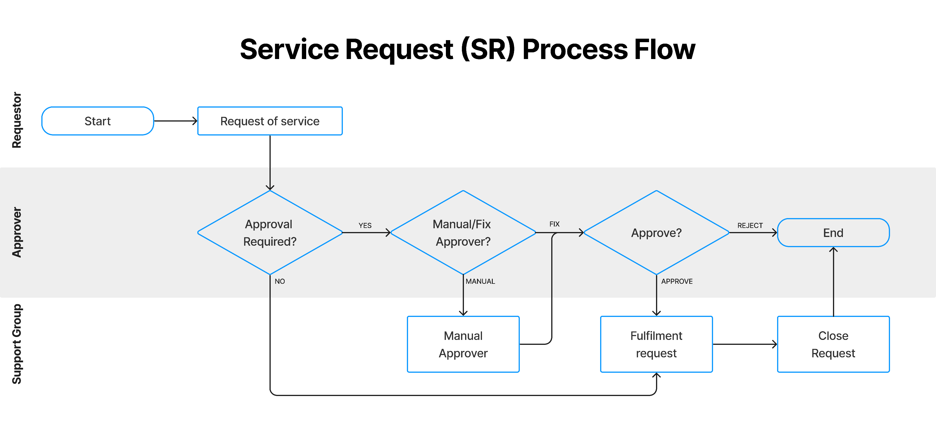 Approve/Reject: Approvers review the request details and either approve or reject the request. This may involve multiple levels of approval depending on the complexity of the request.